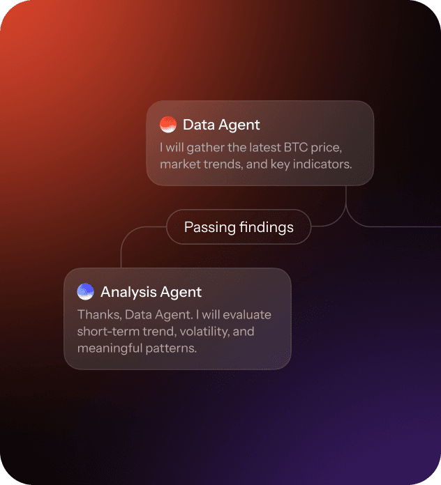 Assign roles, goals, and communication patterns between agents via the orchestration layer.